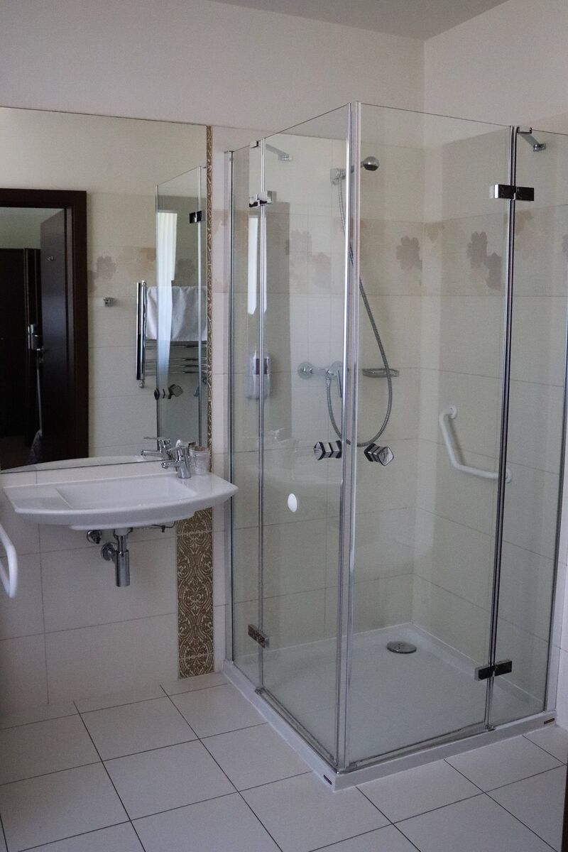 • Nocleg dla dwóch osób w pokoju o podwyższonym standardzie, łazienką z narożną wanną , śniadaniem, miejscem parkingowym, darmowym Wi-Fi,